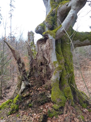 Teslínský/košatý/hraniční buk lesní. S obvodem 606 centimetrů a stářím cca 300 let je největším bukem ve Středočeském kraji a zřejmě posledním hraničním stromem v Brdech. Mohutný dvoják se na přelomu století rozlomil v tlakové vidlici. Přestože byl v roce 2011 arboristicky ošetřen, jeho postupnému zániku nezabráníme. Na druhou stranu můžeme přímo pozorovat osidlování stromu dřevokaznými houbami a dalšími organizmy vázanými na odumírající dřevo. Původní podobu teslínského buku můžeme dodnes obdivovat na grafice pana Jana Čáky, publikované v jeho knize Brdské toulání.